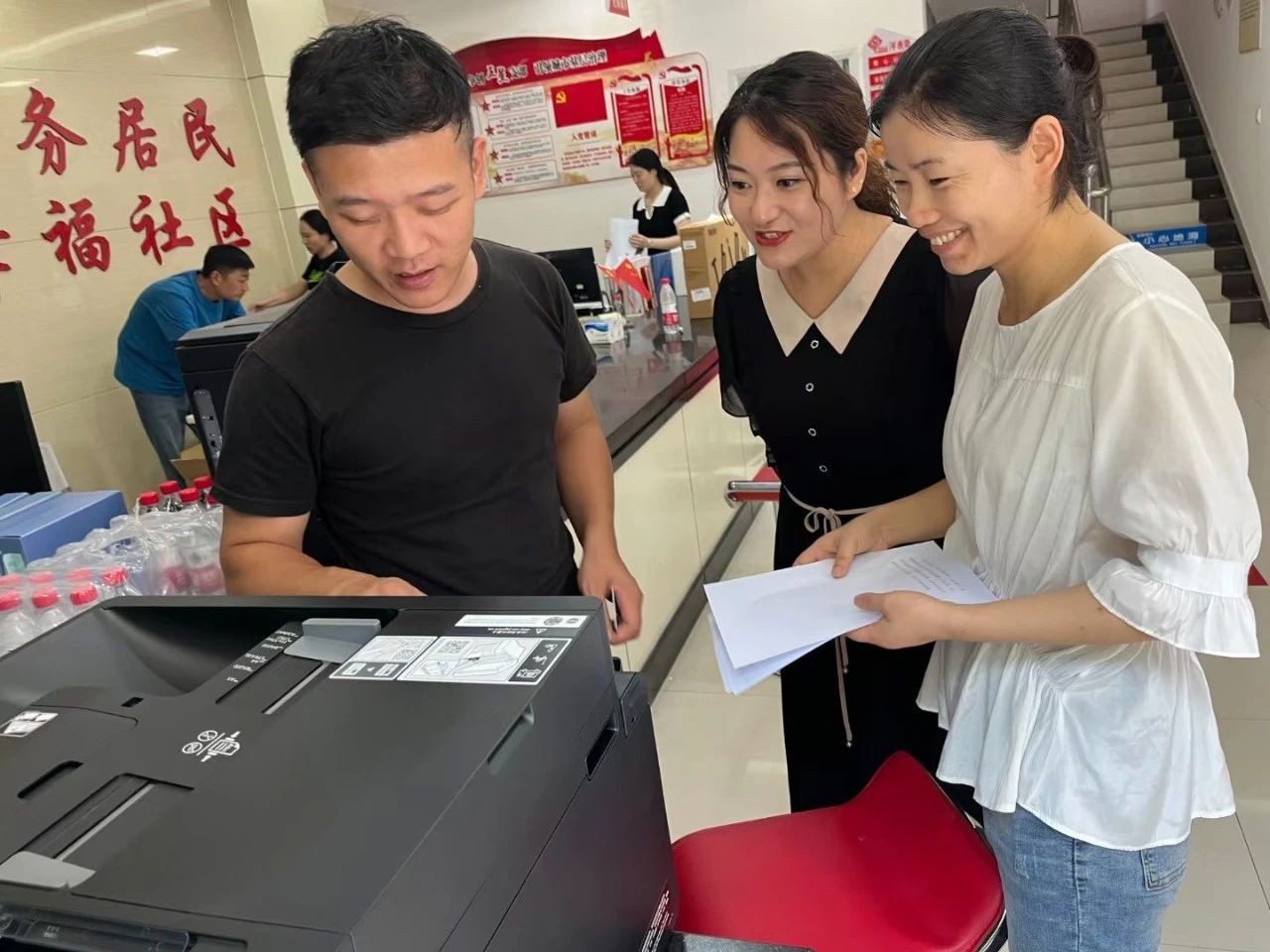 结合平西路社区自身实际需求,经过精心对比挑选,华信建投集团为平西路社区选定了1台彩色数码一体打印复印机和4台联想全新一代台式电脑。经过安装调试,崭新的设备替换了老旧机器,社区工作人员感受着崭新设备带来的便捷和高效,脸上不禁洋溢出笑容。