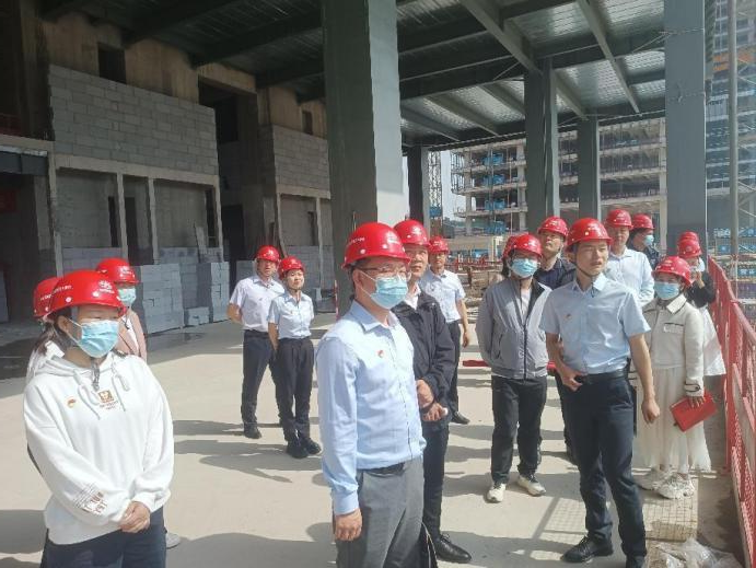 活动伊始,参加活动党员来到中央活力区——高铁CAZ项目建设现场,在中铁十五局项目相关负责人带领下,详细了解了工程概况、项目管理目标、总体思路、项目实施具体举措以及目前项目进展等情况,实地参观了A座B座建设情况,站在百米高台上俯瞰城市美好变化,实实在在感受信阳新地标带来的心灵震撼。