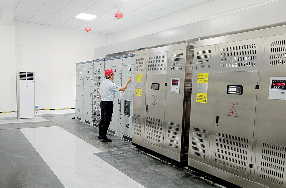 工作人员巡查维护泵站配电间设备 李凯 摄