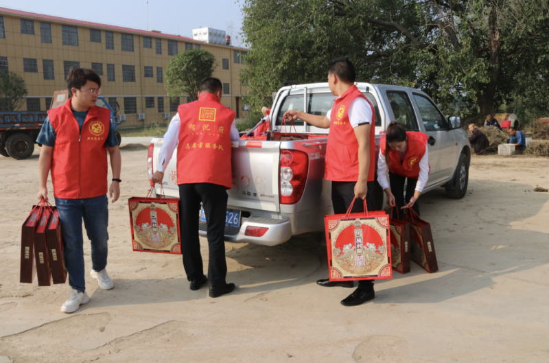 早上,参与爱心行动的志愿者在熙悦府项目总经理李成、熙悦府营销总监张家印的带领下,怀着喜悦的心情,载着满满一车美味的月饼礼盒前往慰问现场。