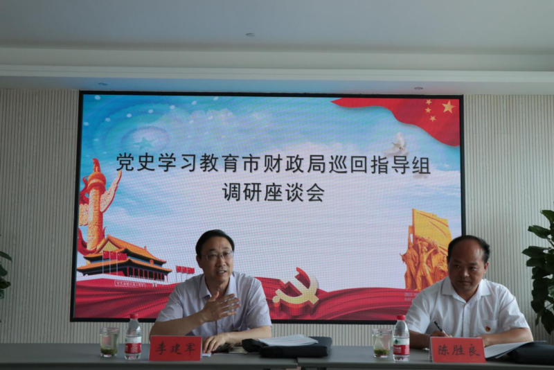 2021年6月9日下午,党史学习教育市财政局巡回指导组一行6人在组长李建军、副组长陈胜良的带领下,莅临信阳华信投资集团开展党史学习教育巡回指导。集团公司党委书记、董事长万汉华,党委委员、纪委书记杨帆,党委委员、副总经理李新,副总经理余向红参加座谈会。