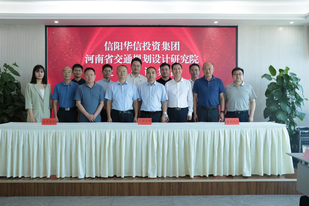 为拓展专业市场,践行“优势互补、强强联合、合作共赢”的发展理念,8月24日下午,信阳华信投资集团与河南省交通规划设计研究院、泛华建设集团在真诚友好协商的基础上,就合资设立华通规划设计研究院有限公司相关事宜举行签约仪式。华信投资集团总经理韦向智、河南省交通规划设计研究院总经理汤意、泛华建设集团副总裁张峰出席签约仪式并分别致辞。华信投资集团、河南省交通规划设计研究院、泛华建设集团相关领导及主要负责同事参加仪式。仪式由华信投资集团总经理韦向智主持。