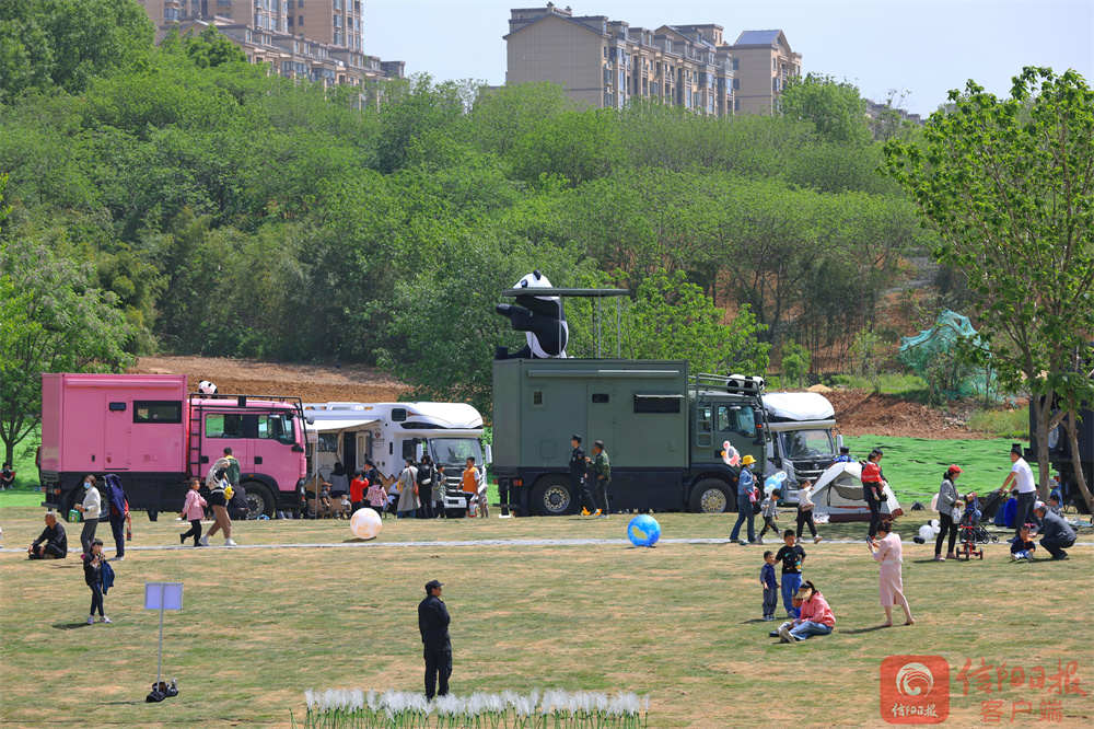 春光无限好,出游正当时。今天是五一假期第一天,记者在位于羊山新区的信阳青年营地看到,正在这里开展的户外房车露营嘉年华吸引了众多市民前来打卡游玩。游客或三五成群、或携家带口,谈笑风生,观赏美景,享受着假日美好时光。