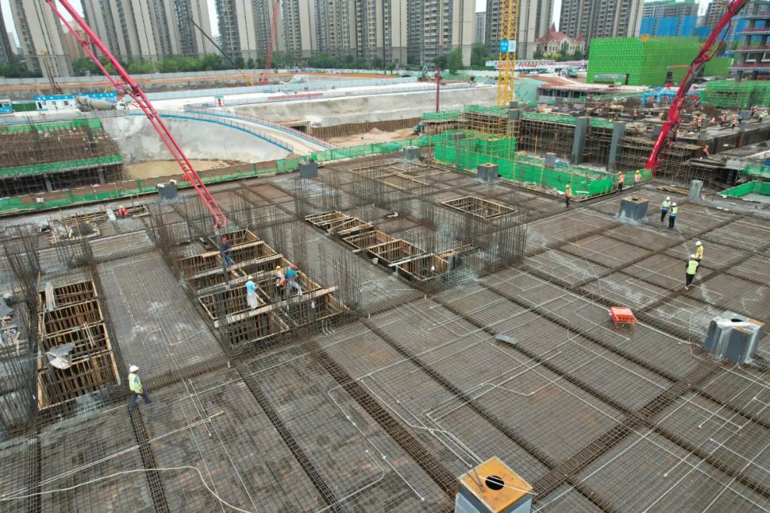 “该标段开工以来,持续遭受强降雨、市政道路维修、高温天气、施工场地狭小等不利因素影响。为此,中建八局项目部积极优化施工方案,科学统筹工期,合理调配资源,有序组织施工,以‘现场即战场、开工即决战’的姿态,全力推进项目建设,先后完成支护施工、桩基施工、主楼大体积混凝土浇筑、地下室结构等工序,仅用不到4个月的时间,顺利实现主楼突破‘正负零’。”中建八局项目负责人梁伟介绍。