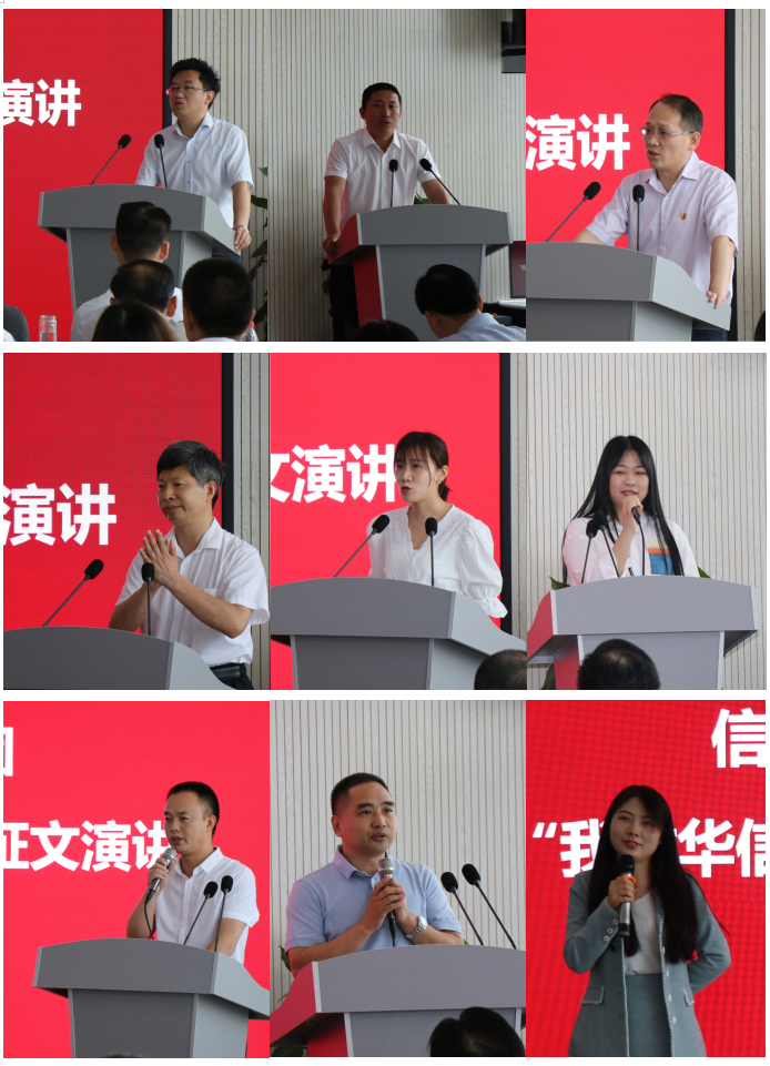 演讲在集团公司多功能会议厅进行,由人力资源总监许辉主持,9位选手依次上台,各展风彩。有的声情并茂、上下互动,抒发对华信主要领导的感谢!对华信公司的热爱!有的引经据典、旁征博引,纵论对华信改革的思索、对华信发展的思考。演讲现场气氛热烈、高潮迭起。经过评委现场打分,最终评出一等奖2名,二等奖3名,三等奖4名。集团公司董事长万汉华、总经理黄在国、副总经理杨飞、专职董事秦华分别给获奖选手颁奖。